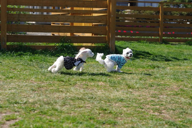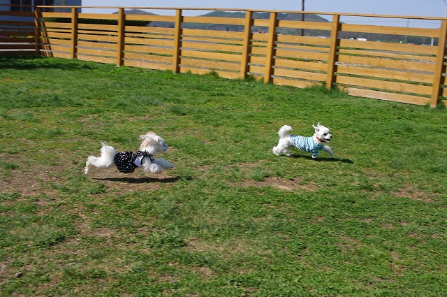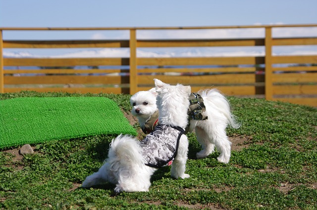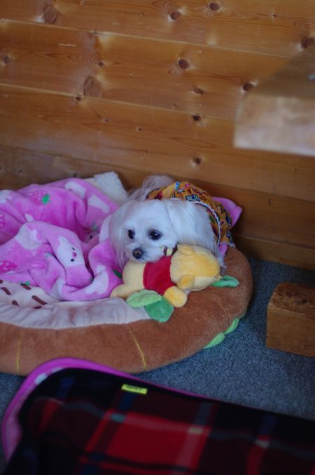 ワンコたちは、コテージの中で、思い思いに過ごしています。