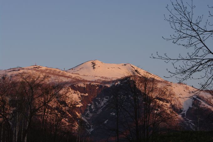 ふと窓の外を見てみると、残照に赤く照らされる「赤富士」ならぬ、