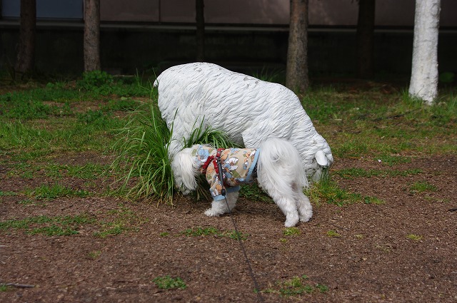 「マル吉君ってば、お花食べてるよ~・・・」by桃ちゃん。