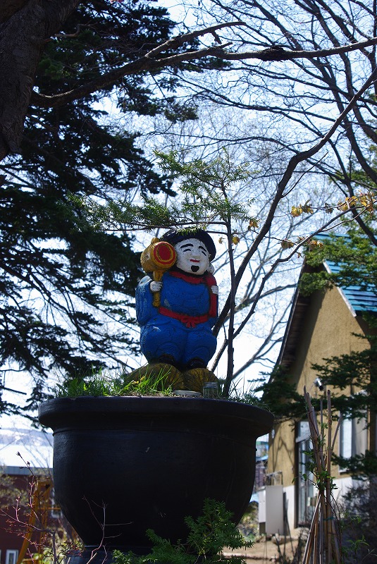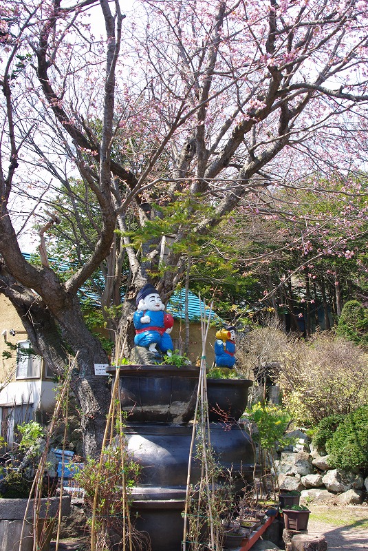 桜の下に、大黒さんと恵比寿さん・・・かな?