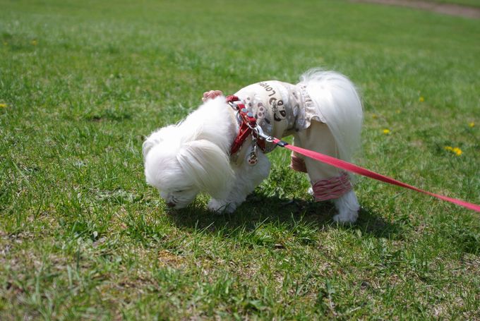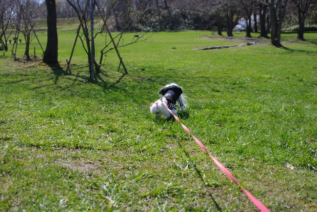 マル吉家に出かける前に、朝のうちにマミと公園散歩してました。