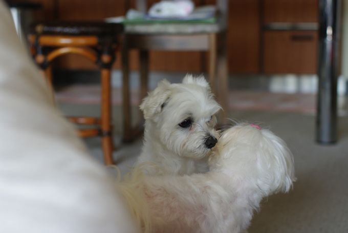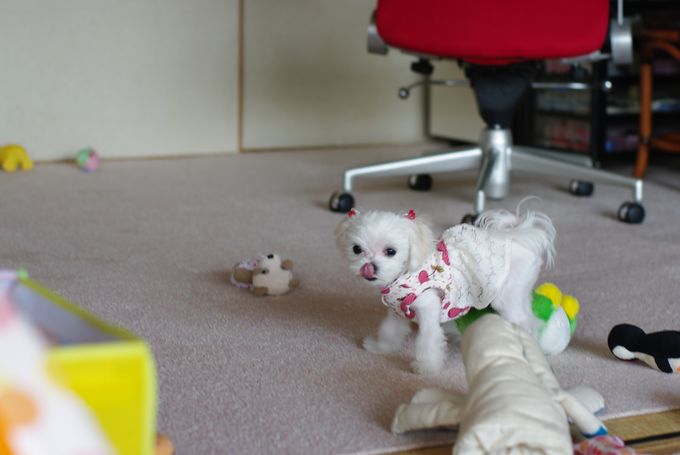 Luluちゃん、初めてのマル吉家でもぜんぜん平気で、