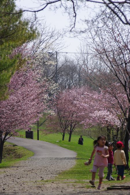 毎年この時期は、ご近所公園で散歩と花見が楽しめて、