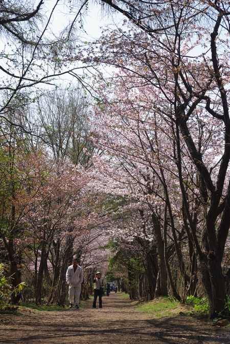 こんな桜並木をのんびり散策し、