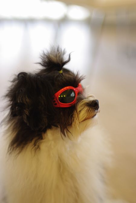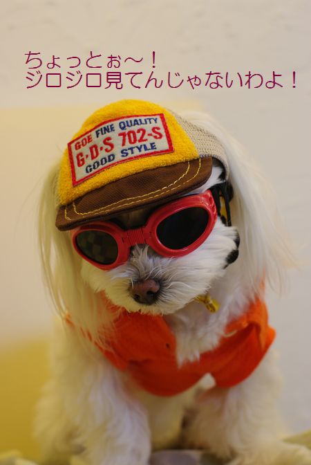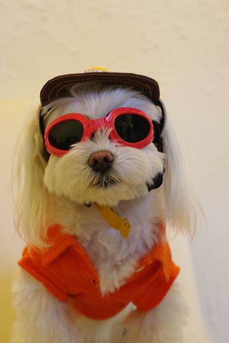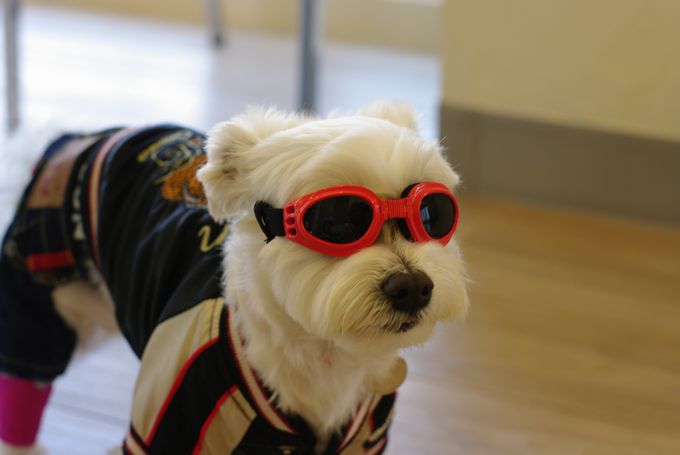 ワンコのゴーグル、びしっと決めてます!