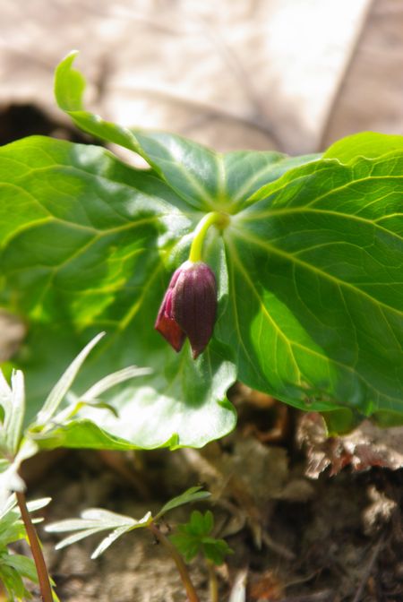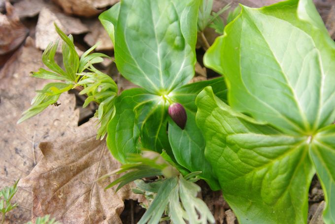 枯葉の中から、エンレイソウも顔を出し始めていました♪