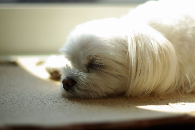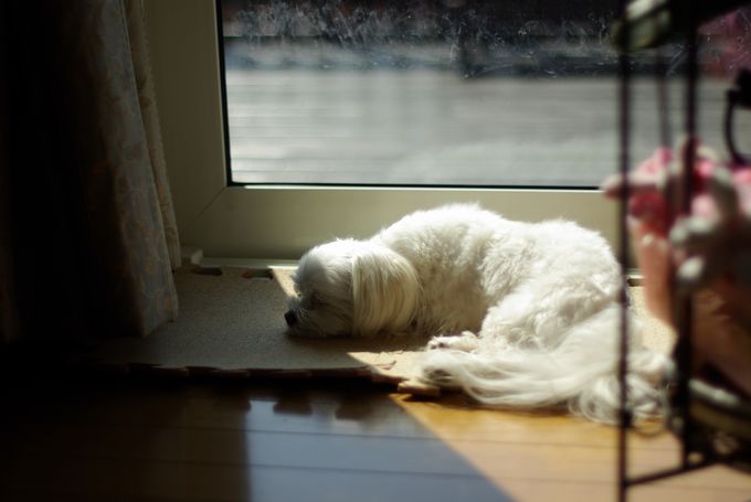 母達がお昼ごはんを食べてる間、マミは日向ぼっこで気持ちよさげ♪