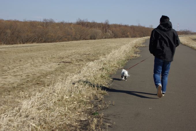 お天気もいいことだし、今日は父に代わって母がマミと朝散歩♪