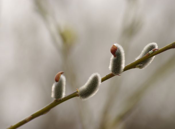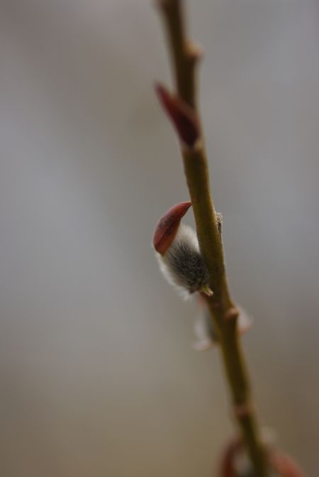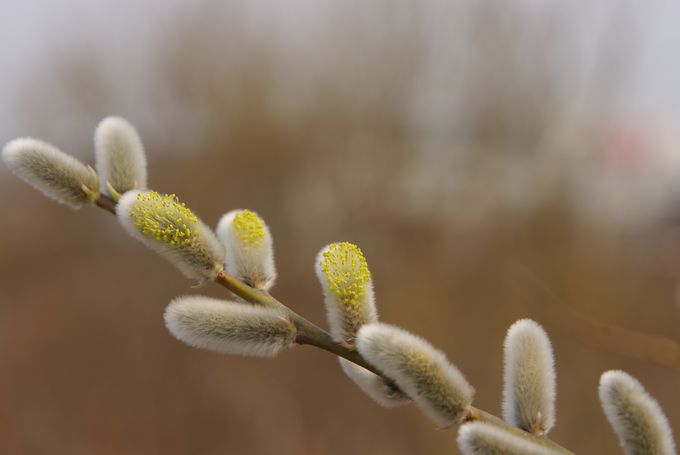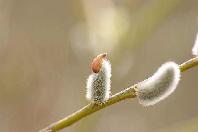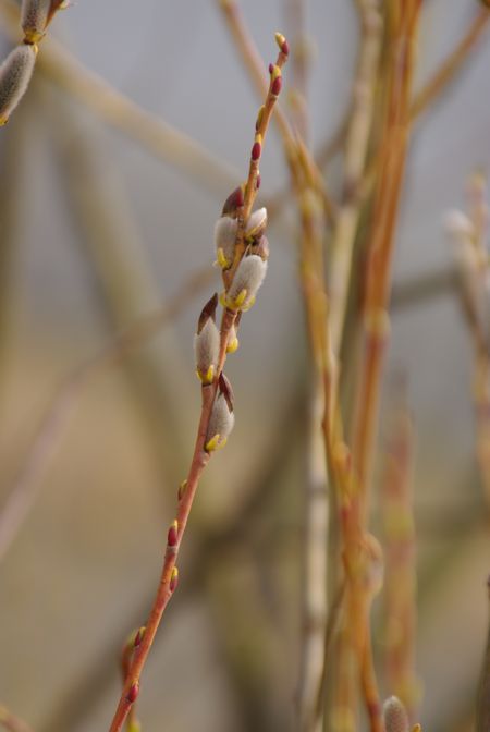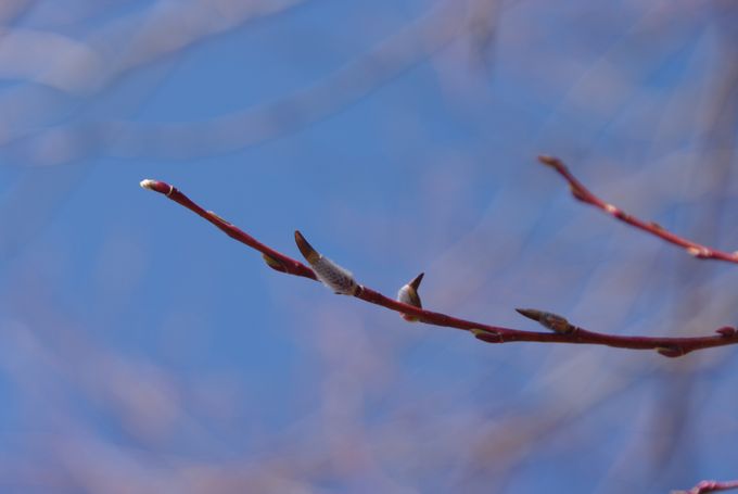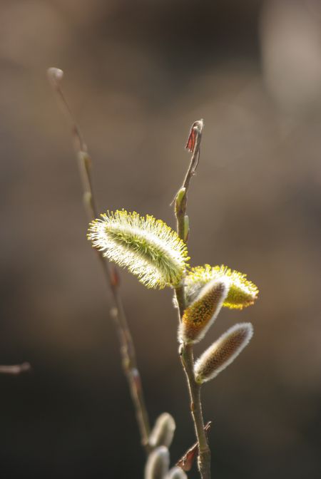ヤナギの花穂が、暖かい陽を浴びてきらきら輝いてましたよ。