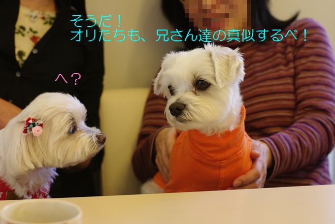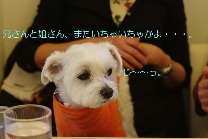 ナナ兄さん夫婦を、じ~っと見つめるマル吉くん。