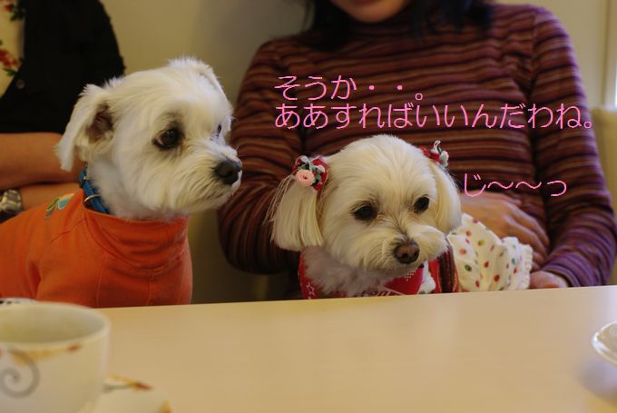 向かいの席では、マル吉くんとりんちゃんの気持ちをつゆ知らず、