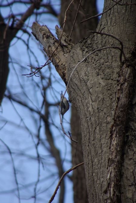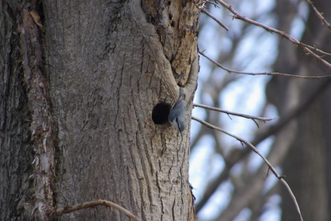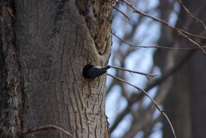 目の前の木に、ゴジュウカラが逆さに止まってました・・・。