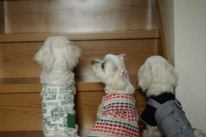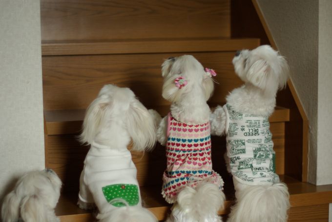 階段を上れない4ワン、必死な顔をして見つめている姿がかわゆい♪