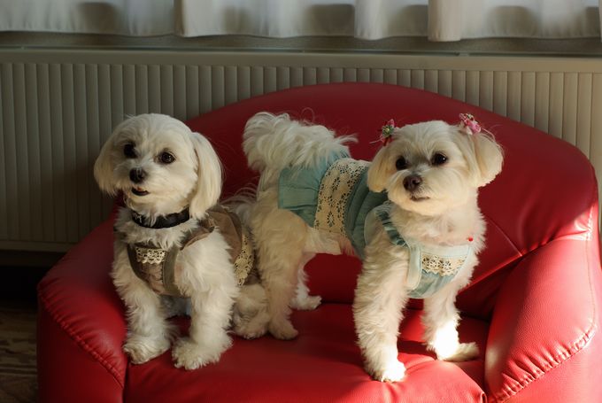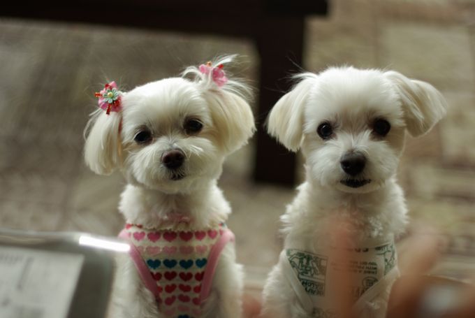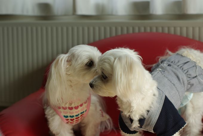 待合室にマルチーズが4匹いると、人目を引いて、