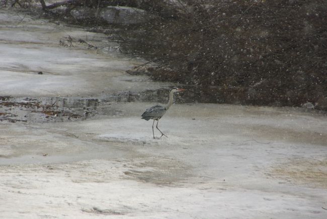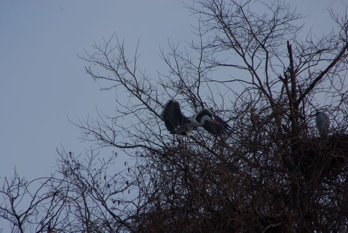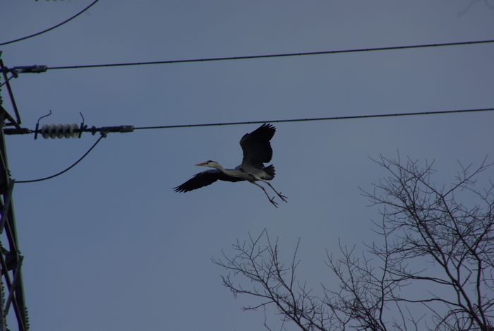 カモとアオサギが、驚いて飛び立っていきました・・・ごみんね。