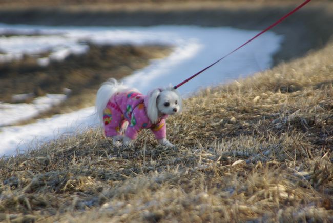 父と朝散歩したマミですが、午後からもご近所散歩に連れ出すと・・