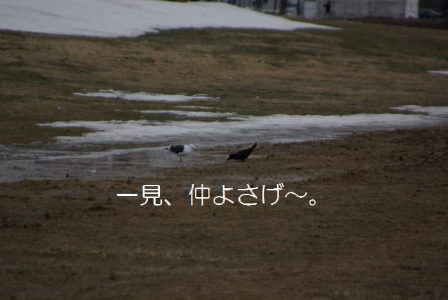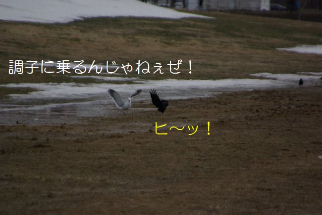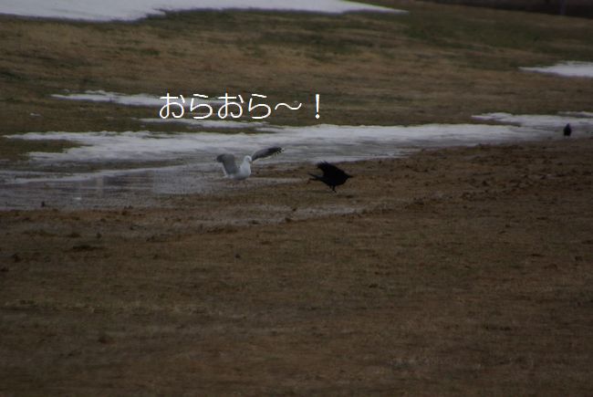 で、いつものカラスの縄張りにカモメがいるわけですから、