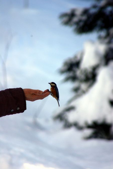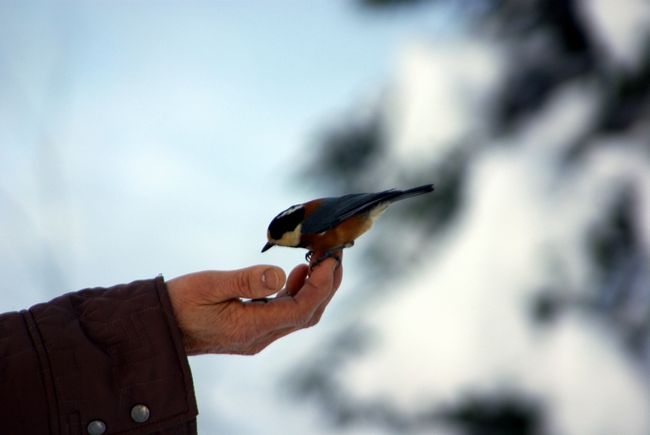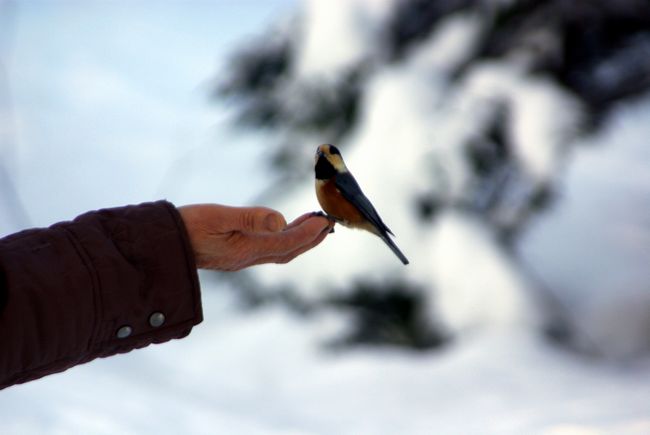 餌付けに何年かかかったようですが、今ではすっかり慣れた野鳥たちが、