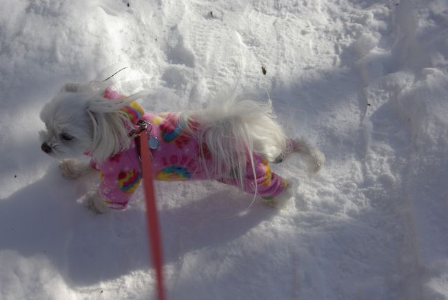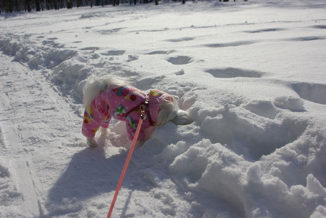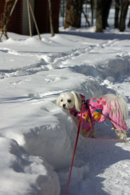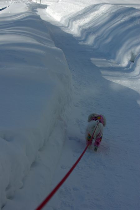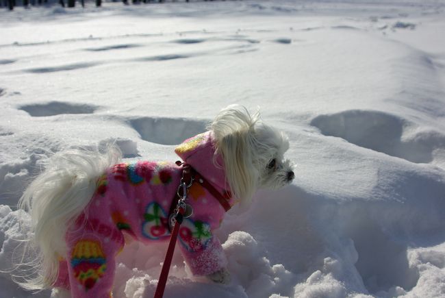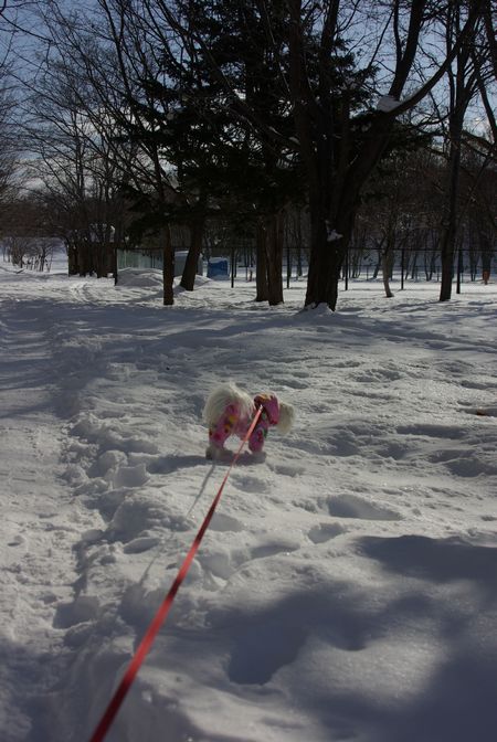雪道を、ダーッと走り抜けていくマミの後姿を眺めながら、