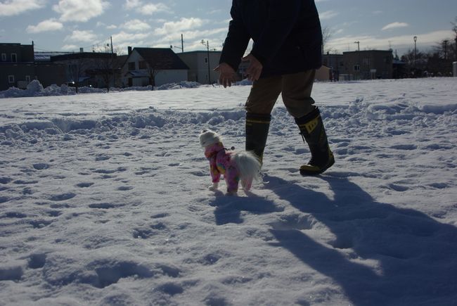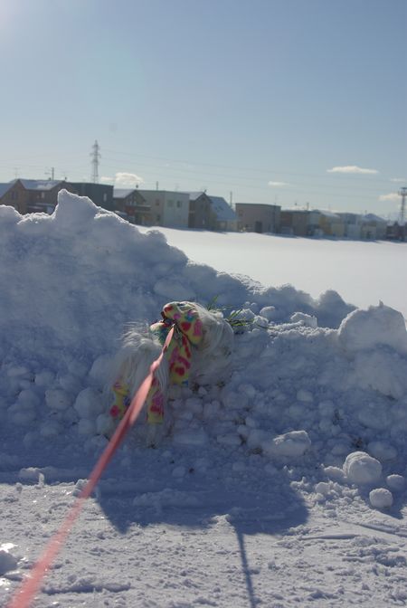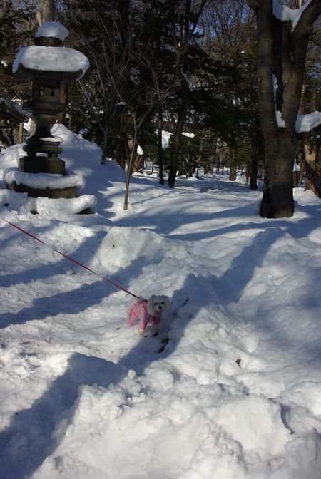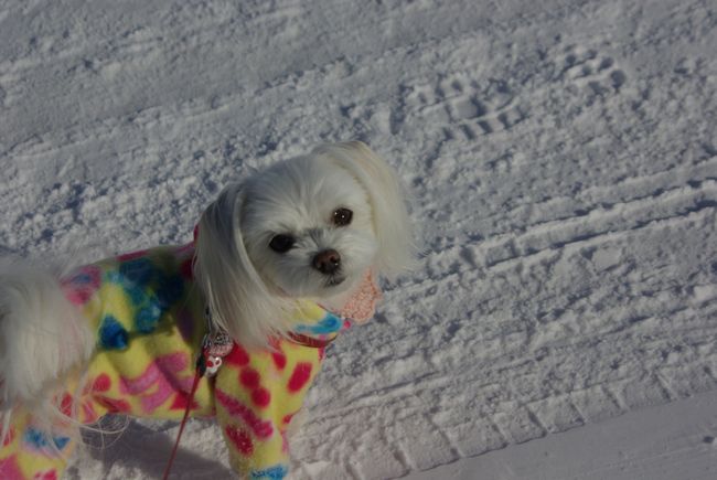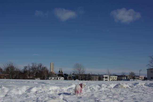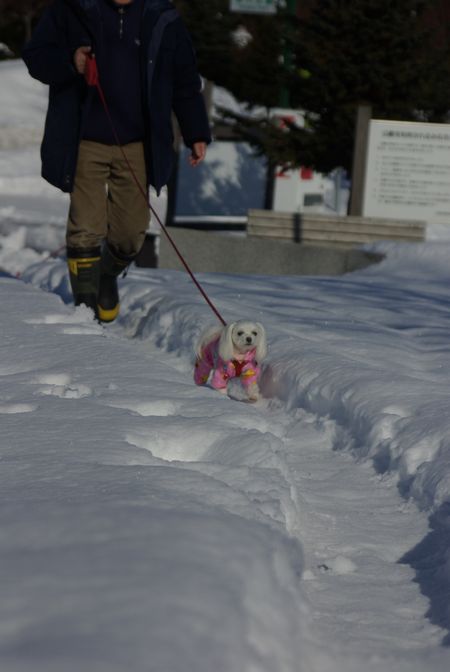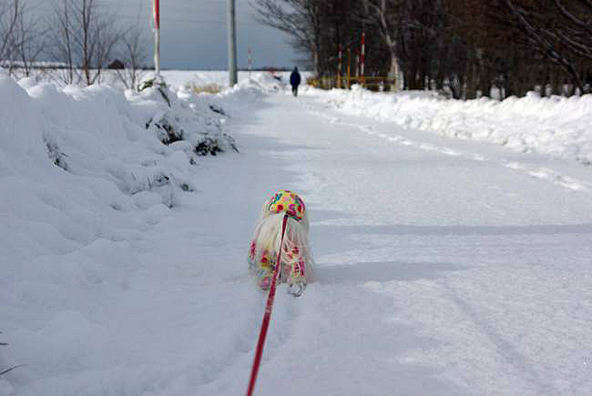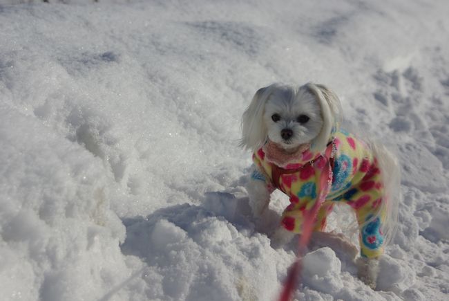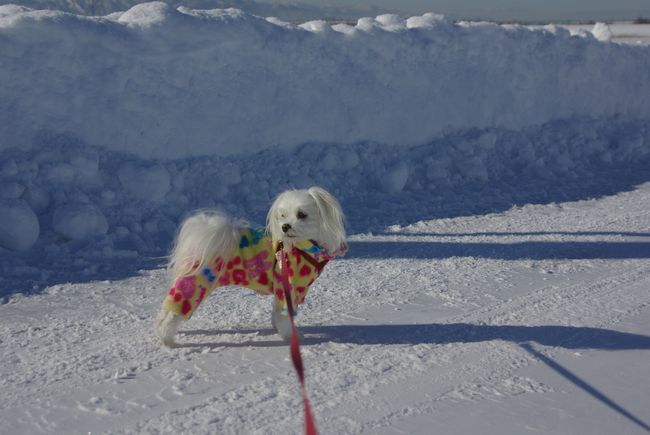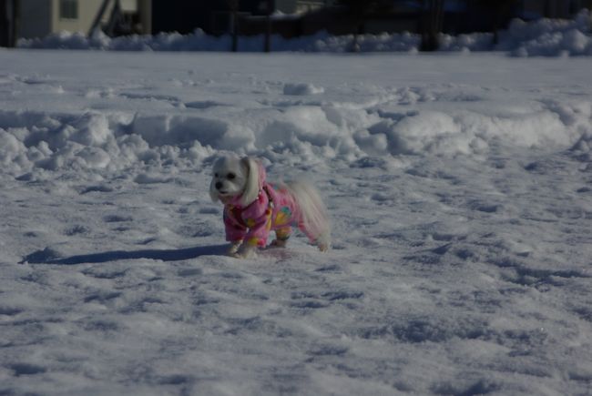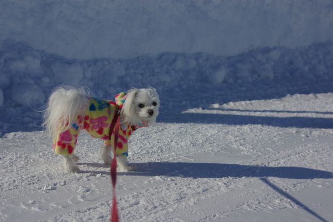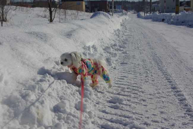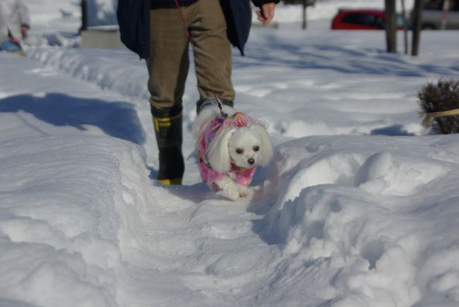 今日も、雪の晴れ間を見て、マミとご近所散歩してきましたよ。