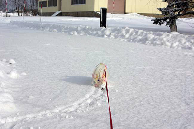 今日もふわふわの雪が積もった道を、