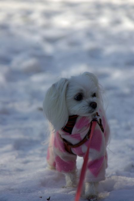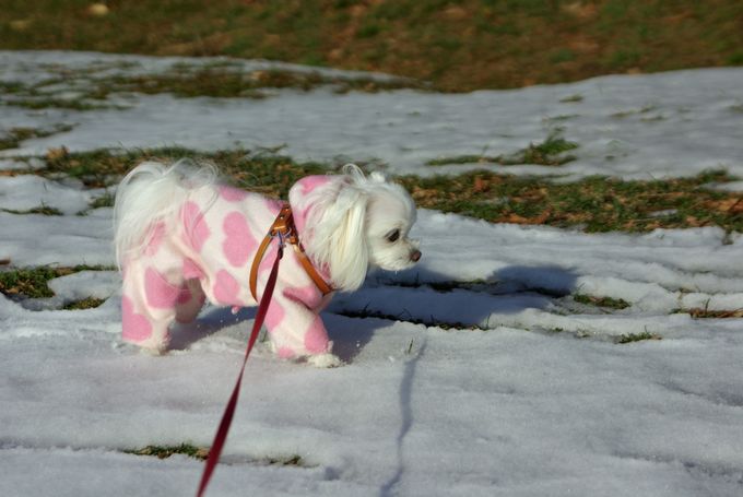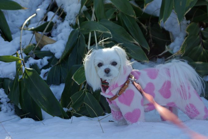 父と朝散歩に出かけ、たっぷり雪の中を歩いてきたマミは、
