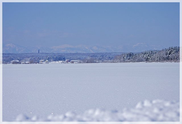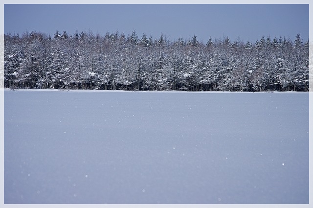春めいた陽射しに、雪原の雪がキラキラ輝き、