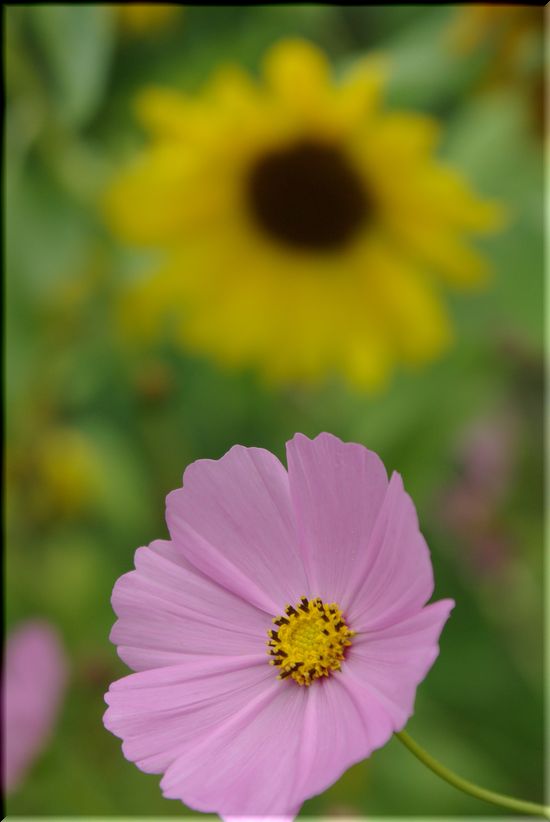 コスモスとひまわりが、初秋に可愛い共演をしていましたよ♪