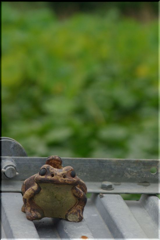 池のほとりにこんなカエルさんを見つけると、