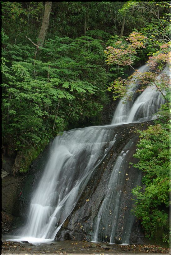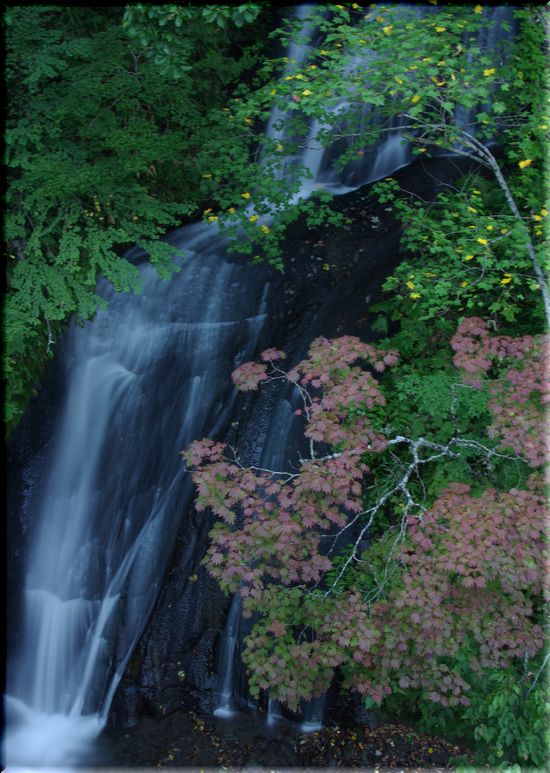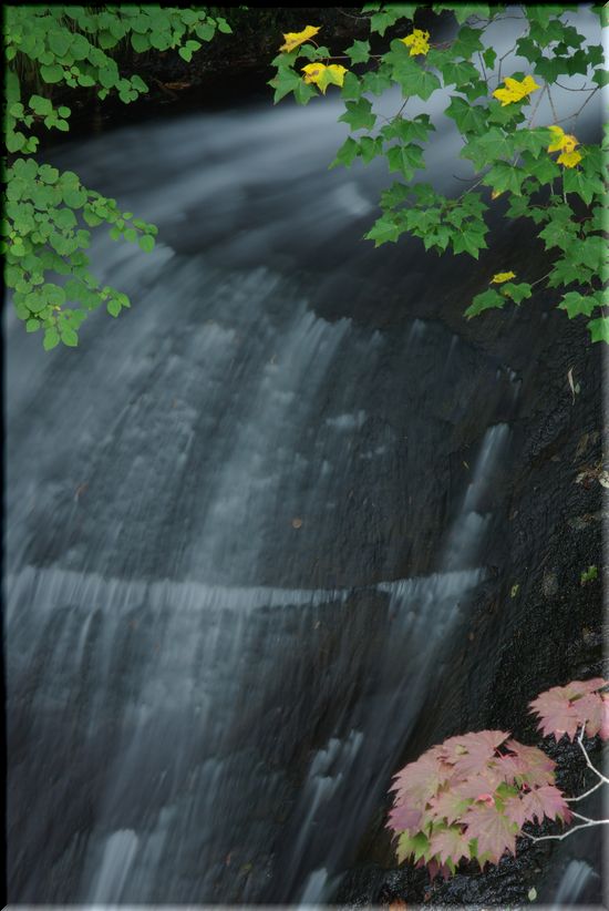 ほんの少し色づき始めた紅葉と滝、です。