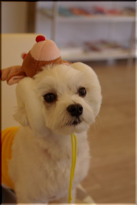 マル吉君に、トナカイの被り物をしてもらうと・・・