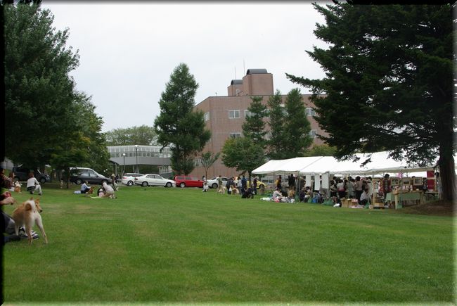 酪農学園大学の広い芝生の上で、
