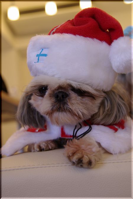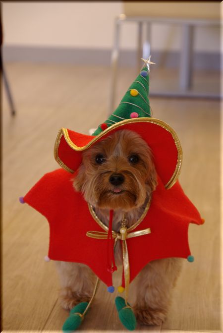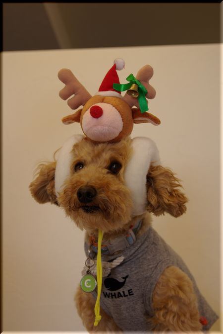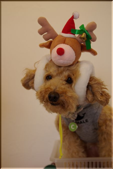 ちょうどセロリさんに、クリスマス用のわんこの衣装が置いてあったので、