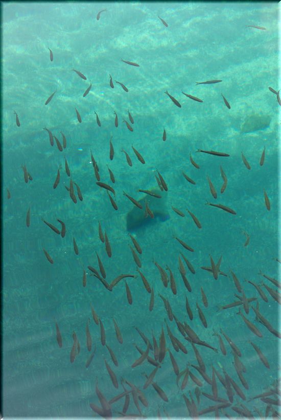 船べりから湖底をのぞくと、「うぐい」がたくさん泳いでました。