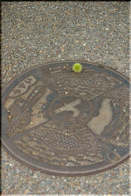 マンホールの蓋に、コロンといがぐりが・・・(やらせじゃありませんよ!)