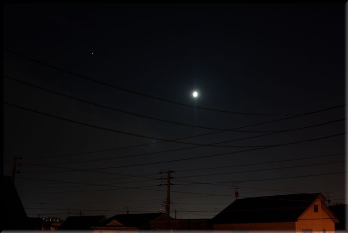 月の左側に、小さく光って見えるのが「木星」です。