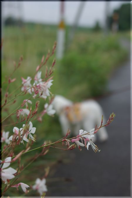 ワンコは花畑の中を歩かせられないので、