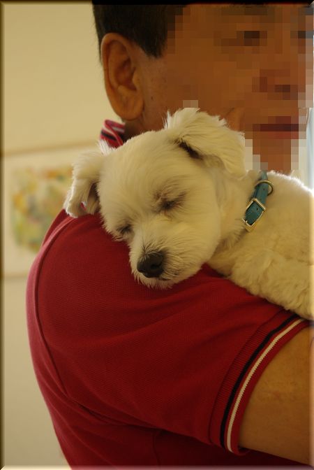 マル吉君も、お父さんの肩にもたれてこの寝顔ですよ~♪