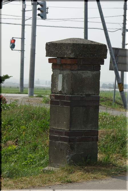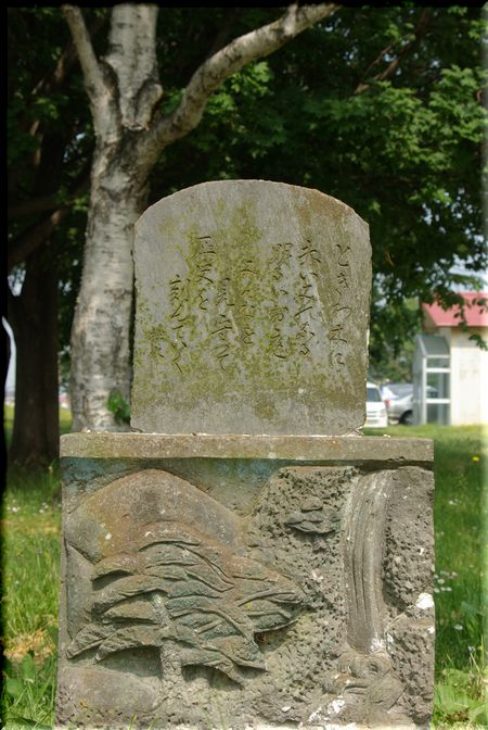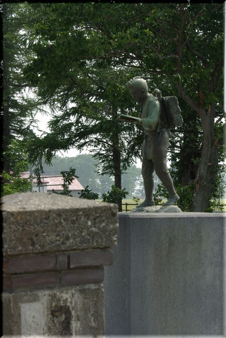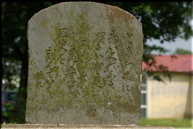 校門の近くには、古びた記念碑のようなものがありました。