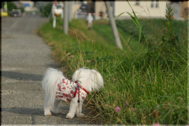 昨日の夕方、マミをご近所散歩に連れ出すと、