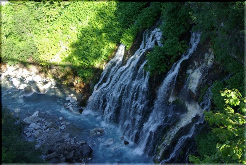 美瑛川が、この白金温泉のところだけブルーになっているのです。