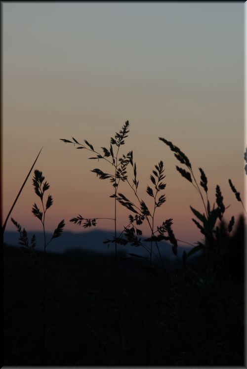 道端の草も畑も、だんだん夕焼け色に染まってきましたよ。
