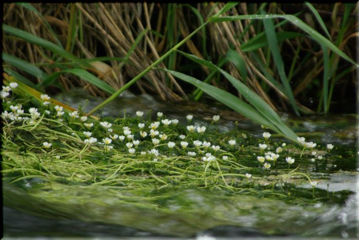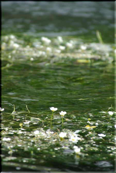 白い小さな花が「梅花藻」ですぅ~(爆)