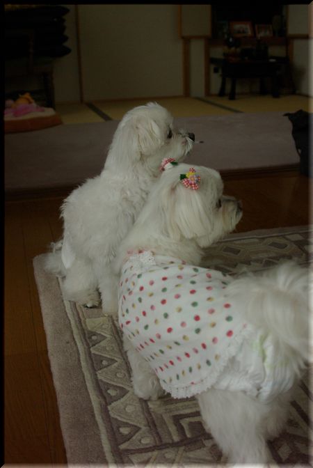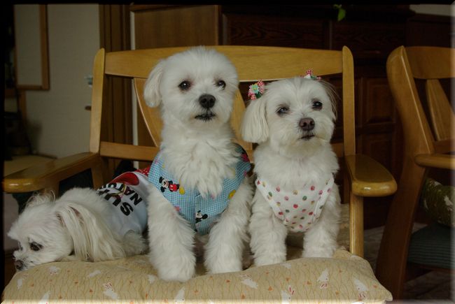 母たちがおしゃべりしている間、3ワンはそれぞれおとなしくして、