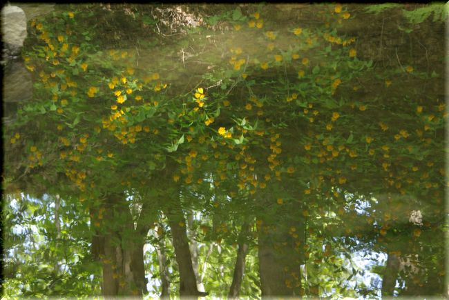 汚い池に映るヤマブキの花♪