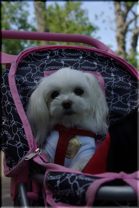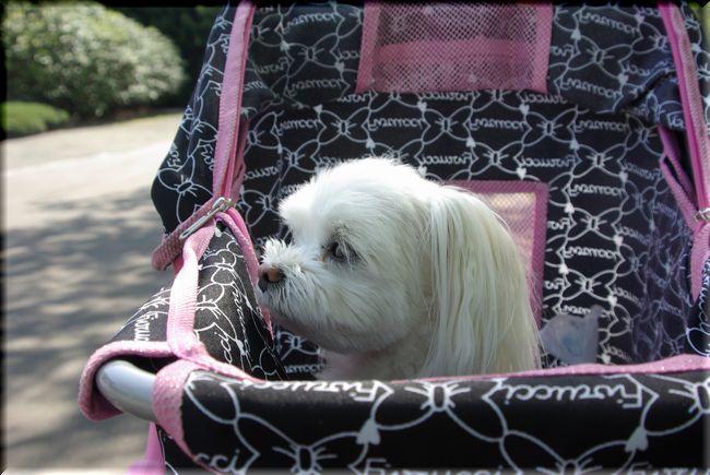 ワンコが入っていけないところでは、カートに乗せてお散歩してきました。