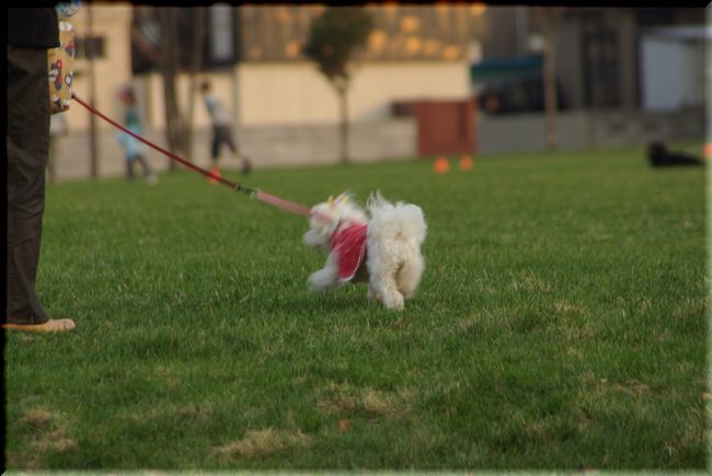 夕方の公園には、たくさんのワンちゃんが集まってました。