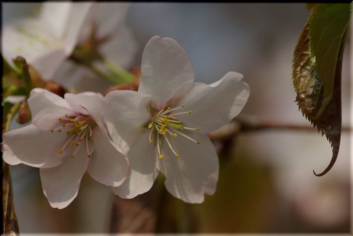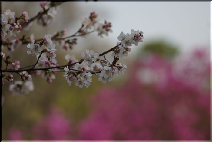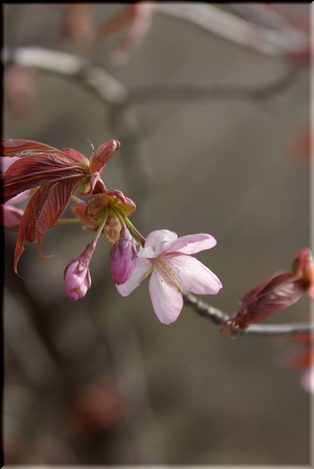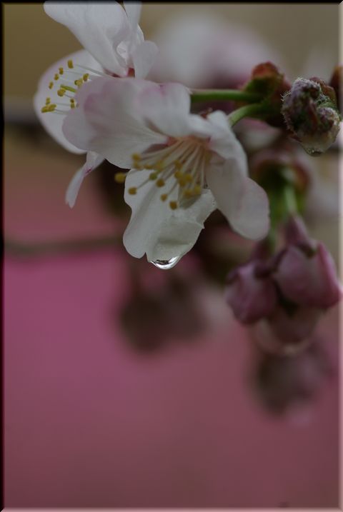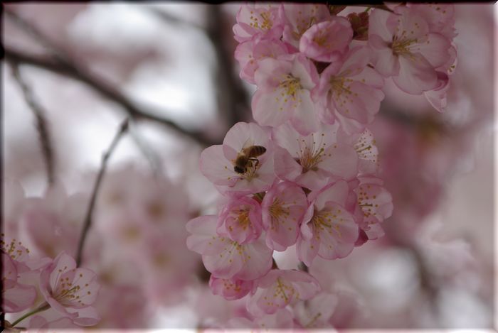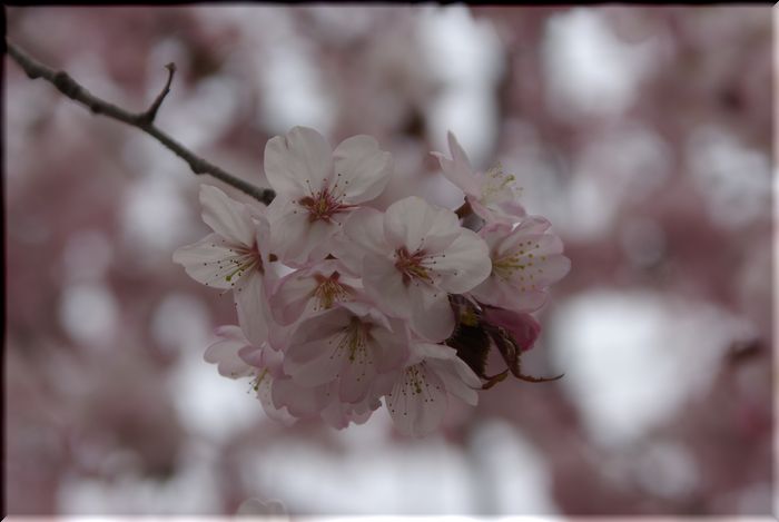 ぽよぽよと咲き出していた桜に近付けると・・・、