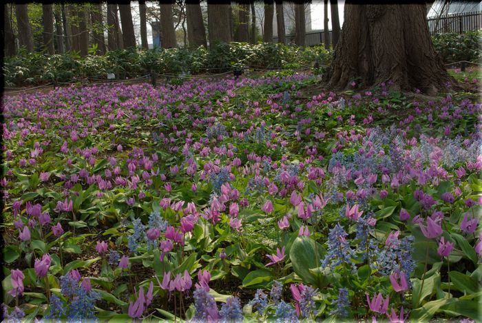 ここの公園には野草園があって、カタクリの花がたくさん咲いています。