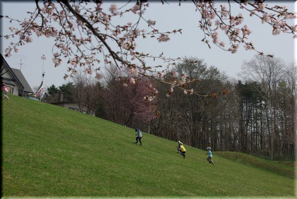 保育園の子供達、元気よく坂を駆け上がっていきました~♪